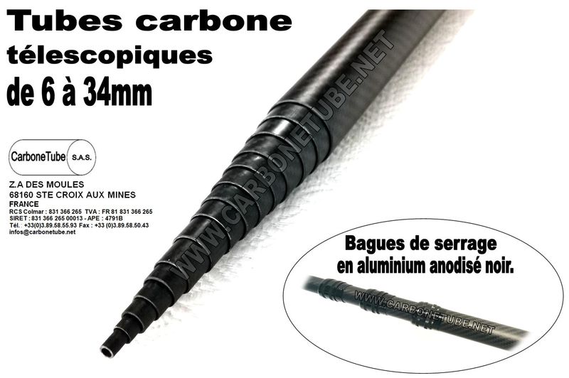 Tube carbone télescopique 36x34x1000mm